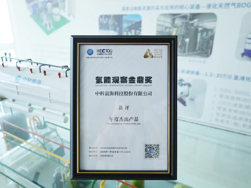4月22日,CHEC2025第五屆世紀氫能與燃料電池大會在上海圓滿結束。會議以“聚焦氫未來,助力碳中和”為主題,旨在打通氫能產(chǎn)業(yè)各環(huán)節(jié),推動產(chǎn)業(yè)鏈發(fā)展。會議現(xiàn)場揭曉2025氫能觀察“金鼎獎”名單,中科富海憑借在氫能領域的產(chǎn)品創(chuàng)新研發(fā)和產(chǎn)品應用示范等方面的實踐成果,榮獲“金鼎獎·年度杰出產(chǎn)品”獎。氫能產(chǎn)業(yè)“金鼎獎”是...